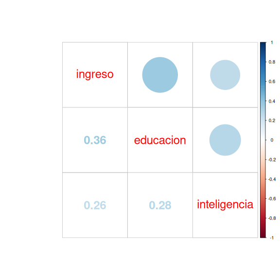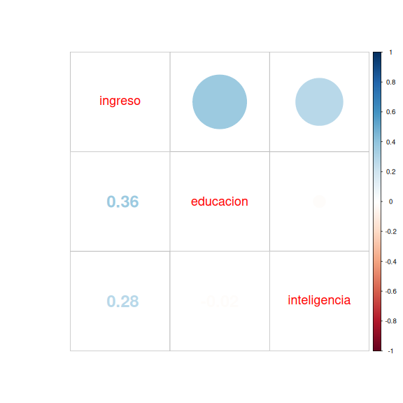 ] ] --- # Descriptivos <table style="text-align:center"><tr><td colspan="6" style="border-bottom: 1px solid black"></td></tr><tr><td style="text-align:left">Statistic</td><td>N</td><td>Mean</td><td>St. Dev.</td><td>Min</td><td>Max</td></tr> <tr><td colspan="6" style="border-bottom: 1px solid black"></td></tr><tr><td style="text-align:left">id</td><td>23</td><td>12.000</td><td>6.782</td><td>1</td><td>23</td></tr> <tr><td style="text-align:left">juegos_x</td><td>23</td><td>3.000</td><td>1.758</td><td>0</td><td>6</td></tr> <tr><td style="text-align:left">puntos_y</td><td>23</td><td>4.000</td><td>1.382</td><td>2</td><td>6</td></tr> <tr><td colspan="6" style="border-bottom: 1px solid black"></td></tr></table> --- .left-column[ # **Medias condicionales** ] .center[] ??? Ejemplo para los sujetos con 1 en X hay 3 valores de Y: 2, 3 y 4. Por lo tanto, la media condicional de Y dado X=1 es 3 --- .left-column[ # Idea de distribución condicional ] .center[] --- .left-column[ # La recta de regresión ] .right-column[ .center[] .small[ La (co) variación general de Y respecto a X se puede expresar en una ecuación de la recta = **modelo de regresión** ] ] --- class: inverse, right ## Para obtener la “mejor recta” se utiliza la estimación de mínimos cuadrados (EMC, o **OLS** – Ordinary Least Squares) -- ## OLS minimiza la suma de los **residuos** = distancias entre las observaciones y la recta en el eje vertical --- # Componentes de la ecuación de la recta de regresión `$$\widehat{Y}=b_{0} +b_{1}X$$` Donde - `\(\widehat{Y}\)` es el valor estimado de `\(Y\)` - `\(b_{0}\)` es el intercepto de la recta (el valor de Y cuando X es 0) - `\(b_{1}\)` es el coeficiente de regresión, que nos dice cuánto aumenta Y por cada punto que aumenta X --- # Estimación de los coeficientes de la ecuación: `$$b_{1}=\frac{Cov(XY)}{VarX}$$` `$$b_{1}=\frac{\frac{\sum_{i=1}^{n}(x_i - \bar{x})(y_i - \bar{y})} {n-1}}{\frac{\sum_{i=1}^{n}(x_i - \bar{x})(x_i - \bar{x})} {n-1}}$$` Y simplificando `$$b_{1}=\frac{\sum_{i=1}^{n}(x_i - \bar{x})(y_i - \bar{y})} {\sum_{i=1}^{n}(x_i - \bar{x})(x_i - \bar{x})}$$` --- # Estimación de los coeficientes de la ecuación: Luego despejando el valor de `\(b_{0}\)` `$$b_{0}=\bar{Y}-b_{1}\bar{X}$$` --- # Cálculo de coeficientes La base para todos estos calculos es la diferencia de cada valor menos su promedio. Para ello: 1. Vamos a crear los siguientes vectores (variables) en nuestra base de datos `$$difx=x-\bar{x}$$` `$$dify=y-\bar{y}$$` --- # Cálculo basado en el ejemplo 2.Con la información anterior podemos obtener la diferencia de productos cruzados `$$difcru=(x-\bar{x})*(y-\bar{y})$$` 3.También obtenemos las diferencias del promedio al cuadrado de X= `$$difx2=(x-\bar{x})^2$$` --- count: false .panel1-ejemplo-auto[ ``` r *datos_b <-datos datos_b ``` ] .panel2-ejemplo-auto[ ``` ## id juegos_x puntos_y ## 1 1 0 2 ## 2 2 0 3 ## 3 3 1 2 ## 4 4 1 3 ## 5 5 1 4 ## 6 6 2 2 ## 7 7 2 3 ## 8 8 2 4 ## 9 9 2 5 ## 10 10 3 2 ## 11 11 3 3 ## 12 12 3 4 ## 13 13 3 5 ## 14 14 3 6 ## 15 15 4 3 ## 16 16 4 4 ## 17 17 4 5 ## 18 18 4 6 ## 19 19 5 4 ## 20 20 5 5 ## 21 21 5 6 ## 22 22 6 5 ## 23 23 6 6 ``` ] --- count: false .panel1-ejemplo-auto[ ``` r datos_b <-datos *datos$p_x <- mean(datos$juegos_x) datos_b ``` ] .panel2-ejemplo-auto[ ``` ## id juegos_x puntos_y ## 1 1 0 2 ## 2 2 0 3 ## 3 3 1 2 ## 4 4 1 3 ## 5 5 1 4 ## 6 6 2 2 ## 7 7 2 3 ## 8 8 2 4 ## 9 9 2 5 ## 10 10 3 2 ## 11 11 3 3 ## 12 12 3 4 ## 13 13 3 5 ## 14 14 3 6 ## 15 15 4 3 ## 16 16 4 4 ## 17 17 4 5 ## 18 18 4 6 ## 19 19 5 4 ## 20 20 5 5 ## 21 21 5 6 ## 22 22 6 5 ## 23 23 6 6 ``` ] --- count: false .panel1-ejemplo-auto[ ``` r datos_b <-datos datos$p_x <- mean(datos$juegos_x) *datos$difx <-datos$juegos_x-datos$p_x datos_b ``` ] .panel2-ejemplo-auto[ ``` ## id juegos_x puntos_y p_x ## 1 1 0 2 3 ## 2 2 0 3 3 ## 3 3 1 2 3 ## 4 4 1 3 3 ## 5 5 1 4 3 ## 6 6 2 2 3 ## 7 7 2 3 3 ## 8 8 2 4 3 ## 9 9 2 5 3 ## 10 10 3 2 3 ## 11 11 3 3 3 ## 12 12 3 4 3 ## 13 13 3 5 3 ## 14 14 3 6 3 ## 15 15 4 3 3 ## 16 16 4 4 3 ## 17 17 4 5 3 ## 18 18 4 6 3 ## 19 19 5 4 3 ## 20 20 5 5 3 ## 21 21 5 6 3 ## 22 22 6 5 3 ## 23 23 6 6 3 ``` ] --- count: false .panel1-ejemplo-auto[ ``` r datos_b <-datos datos$p_x <- mean(datos$juegos_x) datos$difx <-datos$juegos_x-datos$p_x *datos$p_y <- mean(datos$puntos_y) datos_b ``` ] .panel2-ejemplo-auto[ ``` ## id juegos_x puntos_y p_x difx ## 1 1 0 2 3 -3 ## 2 2 0 3 3 -3 ## 3 3 1 2 3 -2 ## 4 4 1 3 3 -2 ## 5 5 1 4 3 -2 ## 6 6 2 2 3 -1 ## 7 7 2 3 3 -1 ## 8 8 2 4 3 -1 ## 9 9 2 5 3 -1 ## 10 10 3 2 3 0 ## 11 11 3 3 3 0 ## 12 12 3 4 3 0 ## 13 13 3 5 3 0 ## 14 14 3 6 3 0 ## 15 15 4 3 3 1 ## 16 16 4 4 3 1 ## 17 17 4 5 3 1 ## 18 18 4 6 3 1 ## 19 19 5 4 3 2 ## 20 20 5 5 3 2 ## 21 21 5 6 3 2 ## 22 22 6 5 3 3 ## 23 23 6 6 3 3 ``` ] --- count: false .panel1-ejemplo-auto[ ``` r datos_b <-datos datos$p_x <- mean(datos$juegos_x) datos$difx <-datos$juegos_x-datos$p_x datos$p_y <- mean(datos$puntos_y) *datos$dify <-datos$puntos_y-datos$p_y datos_b ``` ] .panel2-ejemplo-auto[ ``` ## id juegos_x puntos_y p_x difx p_y ## 1 1 0 2 3 -3 4 ## 2 2 0 3 3 -3 4 ## 3 3 1 2 3 -2 4 ## 4 4 1 3 3 -2 4 ## 5 5 1 4 3 -2 4 ## 6 6 2 2 3 -1 4 ## 7 7 2 3 3 -1 4 ## 8 8 2 4 3 -1 4 ## 9 9 2 5 3 -1 4 ## 10 10 3 2 3 0 4 ## 11 11 3 3 3 0 4 ## 12 12 3 4 3 0 4 ## 13 13 3 5 3 0 4 ## 14 14 3 6 3 0 4 ## 15 15 4 3 3 1 4 ## 16 16 4 4 3 1 4 ## 17 17 4 5 3 1 4 ## 18 18 4 6 3 1 4 ## 19 19 5 4 3 2 4 ## 20 20 5 5 3 2 4 ## 21 21 5 6 3 2 4 ## 22 22 6 5 3 3 4 ## 23 23 6 6 3 3 4 ``` ] --- count: false .panel1-ejemplo-auto[ ``` r datos_b <-datos datos$p_x <- mean(datos$juegos_x) datos$difx <-datos$juegos_x-datos$p_x datos$p_y <- mean(datos$puntos_y) datos$dify <-datos$puntos_y-datos$p_y *datos$dif_cru <-datos$difx*datos$dify datos_b ``` ] .panel2-ejemplo-auto[ ``` ## id juegos_x puntos_y p_x difx p_y dify ## 1 1 0 2 3 -3 4 -2 ## 2 2 0 3 3 -3 4 -1 ## 3 3 1 2 3 -2 4 -2 ## 4 4 1 3 3 -2 4 -1 ## 5 5 1 4 3 -2 4 0 ## 6 6 2 2 3 -1 4 -2 ## 7 7 2 3 3 -1 4 -1 ## 8 8 2 4 3 -1 4 0 ## 9 9 2 5 3 -1 4 1 ## 10 10 3